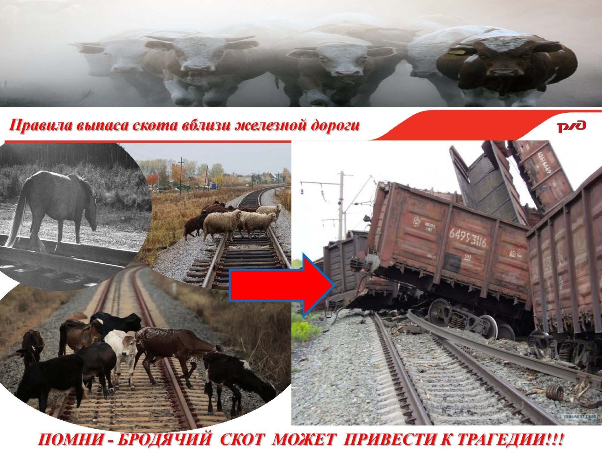 Безнадзорный выпас домашнего скота вблизи полосы отвода железной дороги запрещен!