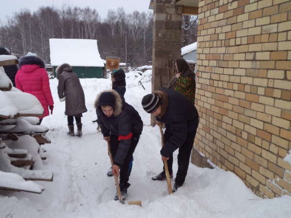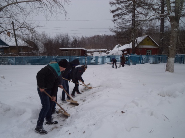 В этот же день школьники оказали помощь ветеранам и пожилым людям в расчистке придомовых территорий от снега. Были расчищены дворы участника ВОВ Акимова В.Е. и пенсионерки Габдракиповой Л.В.